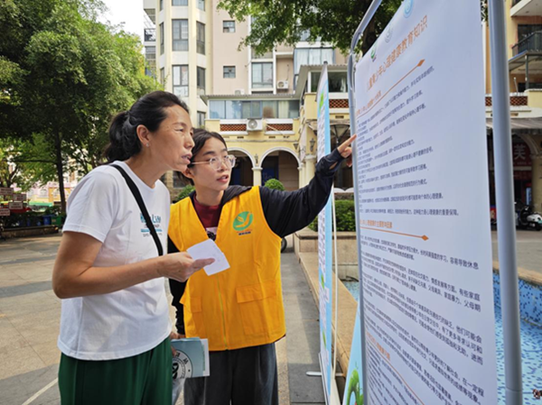 图:共同学习,志愿者为居民讲解精神卫生知识